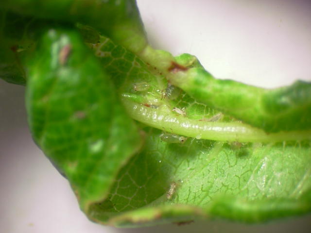 ムギワラギクオマルアブラムシ 寄生葉