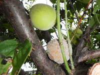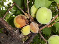 被害:成熟期に果実に灰色の病斑を生じて、果実が腐る。