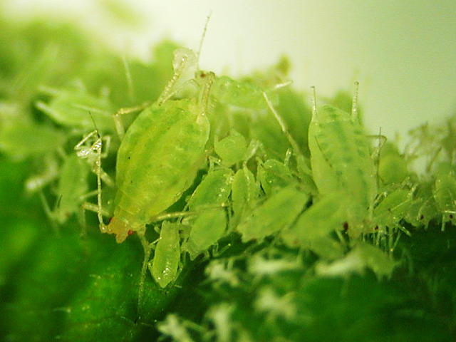 ホップイボアブラムシ成虫(体長2.5mm)及び幼虫