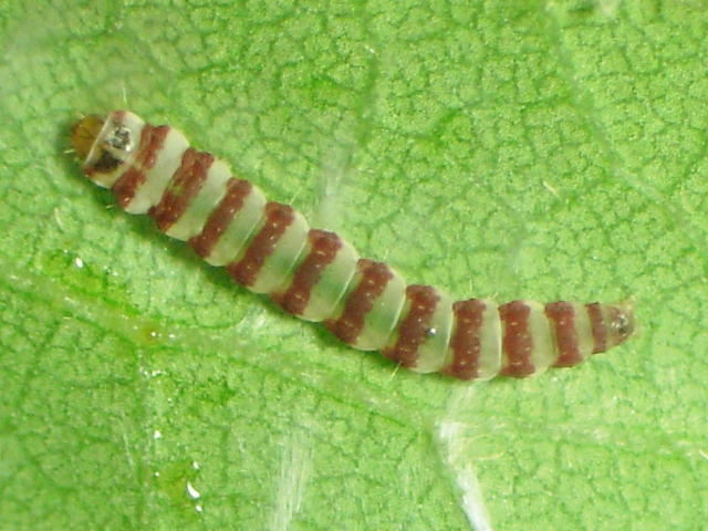 セジロチビキバガ老齢幼虫(体長7mm)