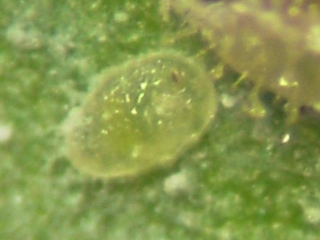 ザクロシロトゲコナジラミ1齢幼虫(体長0.3mm)