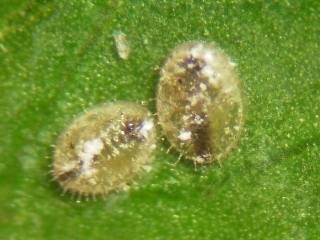 コメント:ザクロシロトゲコナジラミ蛹(体長1mm)
