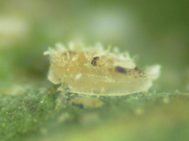 ザクロシロトゲコナジラミ蛹(体長1mm)