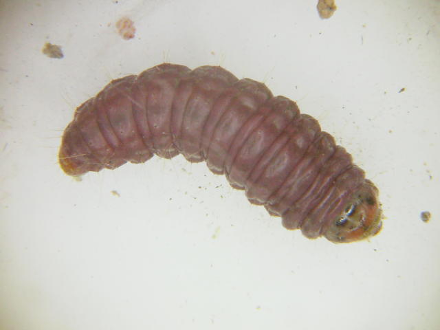 シロイチモジマダラメイガ蛹化前幼虫(体長10mm)