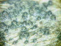 伝染方法:病原菌は、発病茎葉や種子について越冬し、伝染源となる。種子伝染もする。