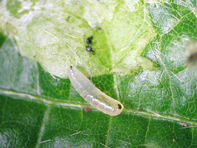 ダイズクロハモグリバエ幼虫(体長2.5mm)