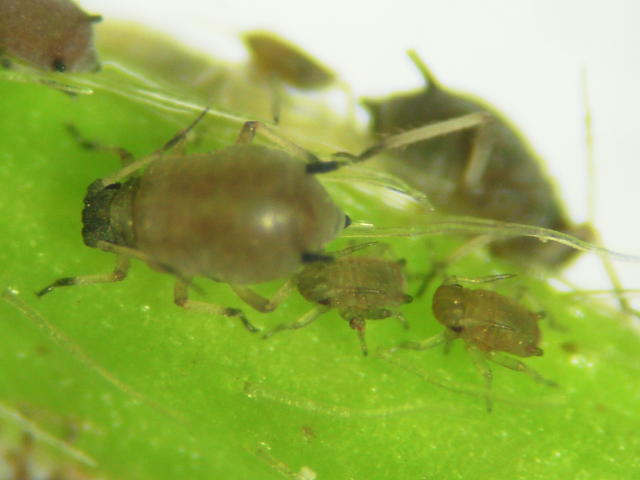 マメアブラムシ幼虫(体長0.5mm、1.2mm)