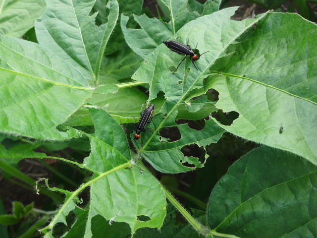 マメハンミョウ成虫 多数集まって食害