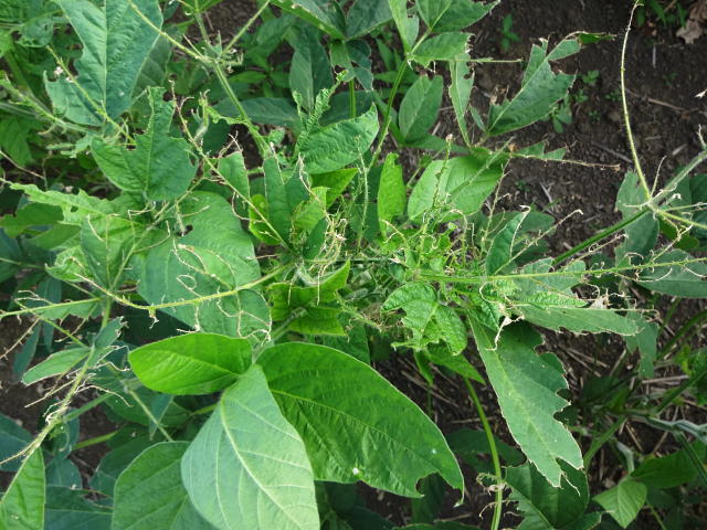 マメハンミョウ成虫 太い葉脈だけを残して食害