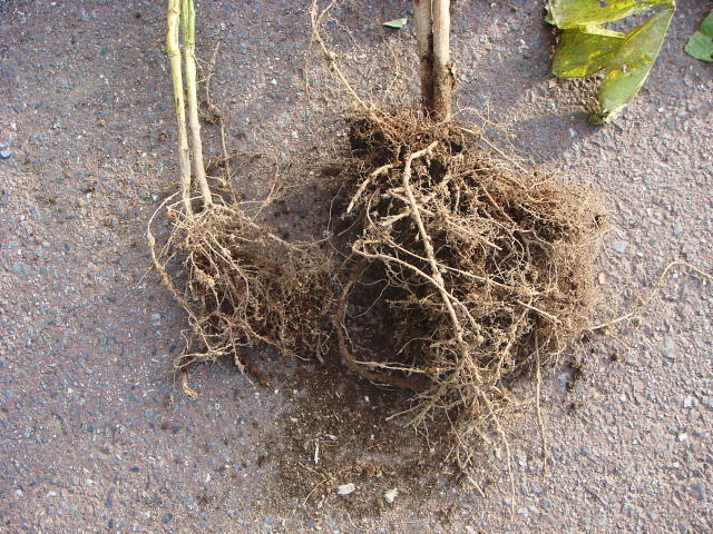 ネコブセンチュウ 根量が少なく、ネコブ発生