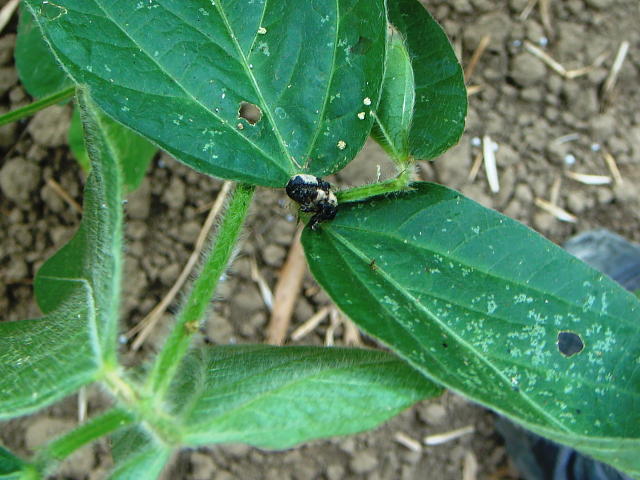 ダイズ葉上のオジロアシナガゾウムシ成虫