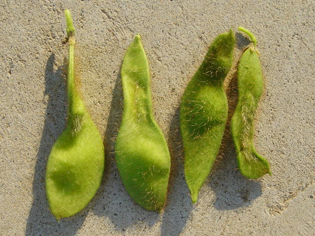 ダイズサヤタマバエによる被害莢は一粒莢になる
