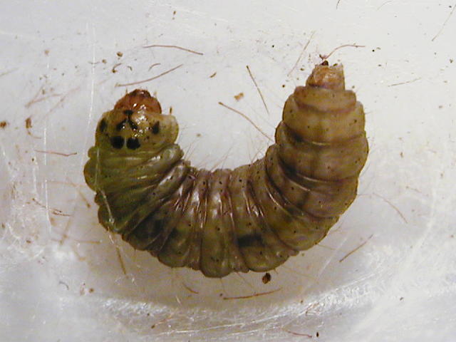 シロイチモジマダラメイガ蛹化直前幼虫(体長13mm)