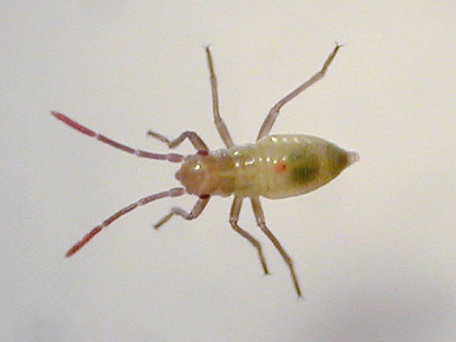 アカヒゲホソミドリカスミカメ2齢幼虫(体長1mm)