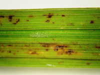 被害:葉に赤褐色斑点が多数できる。