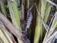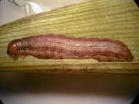 被害:幼虫による葉の食害 参考:浸冠水したほ場で発生が多い