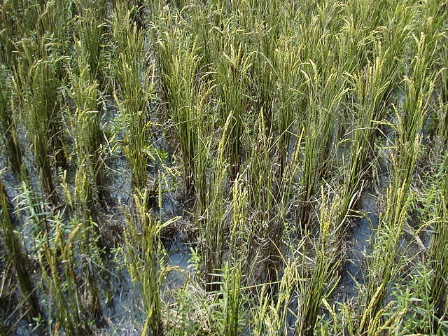 アワヨトウ幼虫によるイネ葉の食害が著しい