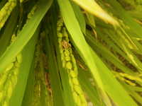 | 発生時期:7月〜9月 被害:吸汁による斑点米の発生、稔実阻害 参考:2022年頃から全国的に急増。2024年8月中旬に出穂した圃場の周囲で、防虫網ですくい取りしたところ、ほとんどがイネカメムシであった。 |