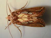 被害:幼虫による葉の食害 参考:すくい取りの際に、まれに成虫が捕獲される