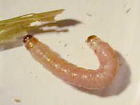 | 発生時期:8月〜9月 被害:幼虫に茎内食害による白穂の発生 |