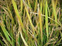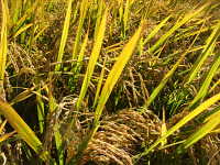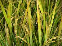 | 発生時期:9月〜10月 原因:出穂後20日間(出穂期〜登熟中期)の異常高温(平均気温27℃以上の日が連続する)及び少雨 被害:止葉が赤褐変し、白未熟粒(胚乳の一部にでんぷん集積の不良な箇所ができ、不透明化する)が多数発生する。 「彩のかがやき」は発生しやすい。 |