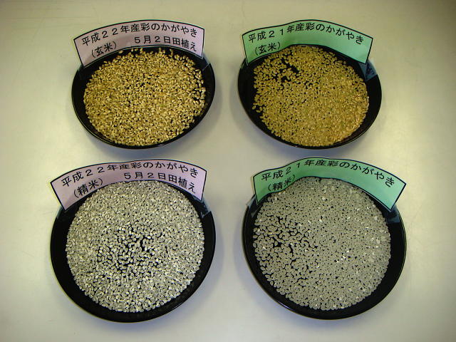 高温障害 平成22年産米(左)と21年産米(右)の比較