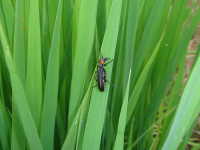 成虫から分泌される液体は、皮膚にふれると炎症を起こし、目に入ると危険である。