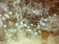 灰色の菌糸と胞子