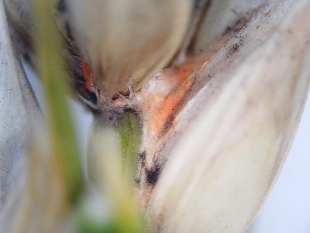 コムギ赤かび病 頴の合わせ目の橙色のカビ