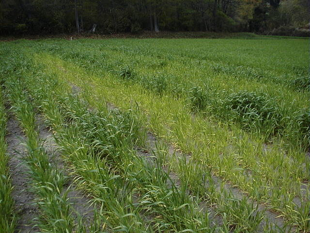 コムギ縞萎縮病発病ほ場(4月中旬)