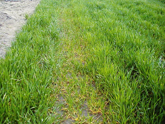 コムギ縞萎縮病部分発生ほ場(4月上旬)