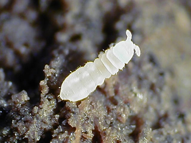 シロトビムシ類 体色は乳白色で、動きが活発