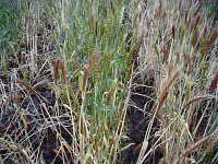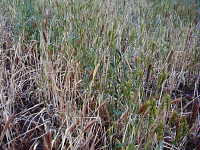 被害:被害株は早く熟して白穂となり、地際部の葉鞘は黒変腐敗して、手で容易に引き抜ける。