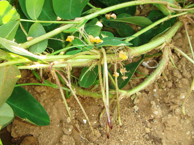 ラッカセイは受粉後に子房柄が地中に伸びる