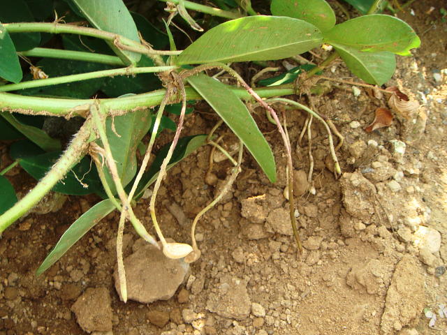ラッカセイは子房柄の先の子房がふくらんで結実する