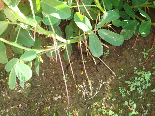 子房柄の伸びたラッカセイ(8月下旬)