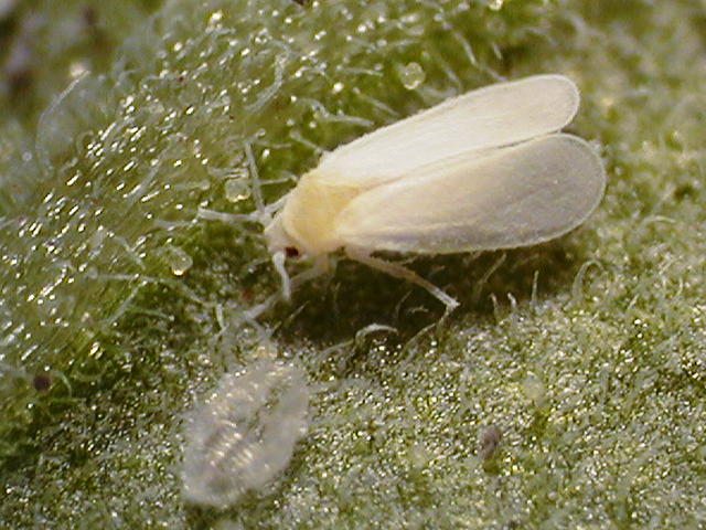 コメント:オンシツコナジラミ成虫(全長1.5mm)