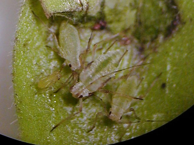 アブラムシ類成虫(体長2.2mm)及び幼虫