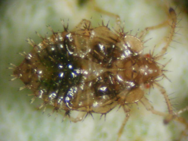 アワダチソウグンバイ5齢幼虫(体長1.6mm)