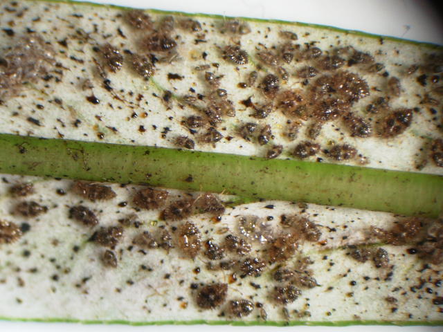 アワダチソウグンバイ 葉裏に幼虫が多数寄生