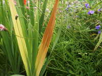 | 発生時期:6月〜7月 病原:糸状菌(かび) 伝染方法:土壌中に残った発病葉上の病原菌が伝染源となる。 被害:葉が黄化し、黒いすすを生じる。 |