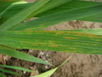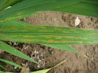 被害:葉に周囲が黄色で内部が赤色の斑点を生じる。