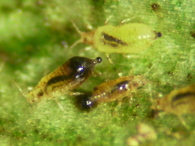 クリバネアザミウマ2齢幼虫(体長1mm)