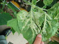 | 発生時期:7月 病原:糸状菌 被害:葉表に黄色の小斑点を生じ、葉裏には白色のかびを生じる。 |