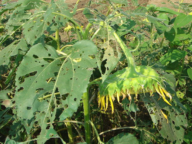 ハスモンヨトウ幼虫による著しい被害株