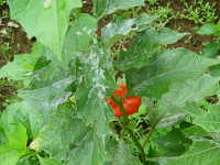 被害:葉にうどん粉状の病斑を生じる。 参考:やや乾燥した条件で発生しやすい。