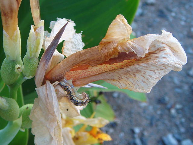 オオタバコガ老齢幼虫による食害花