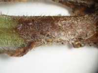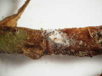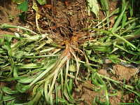 | 発生時期:5月 病原:糸状菌(かび) 伝染方法:土壌中に残った発病葉上の病原菌が伝染源となる。 被害:地際の茎が茶褐色に変色し、腐敗する。 |