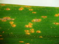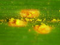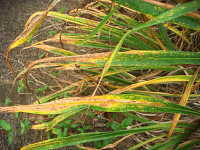| 発生時期:6月〜7月 病原:糸状菌(かび) 伝染方法:土壌中に残った発病葉上の病原菌が伝染源となる。 被害:葉にさび色の病斑を生じる。 |