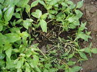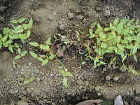 被害:苗の地際部がくびれて細くなり、萎れる。